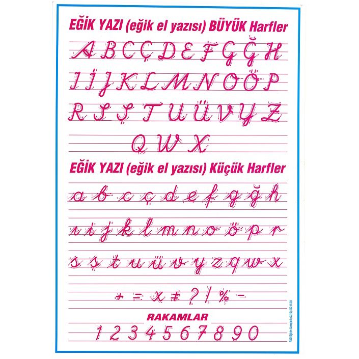 Okul Dünyası kalitesiyle sunulan bu pano, öğrencilerin eğik el yazısı becerilerini geliştirmesine ve yazı estetiğini kazanmasına katkıda bulunur.