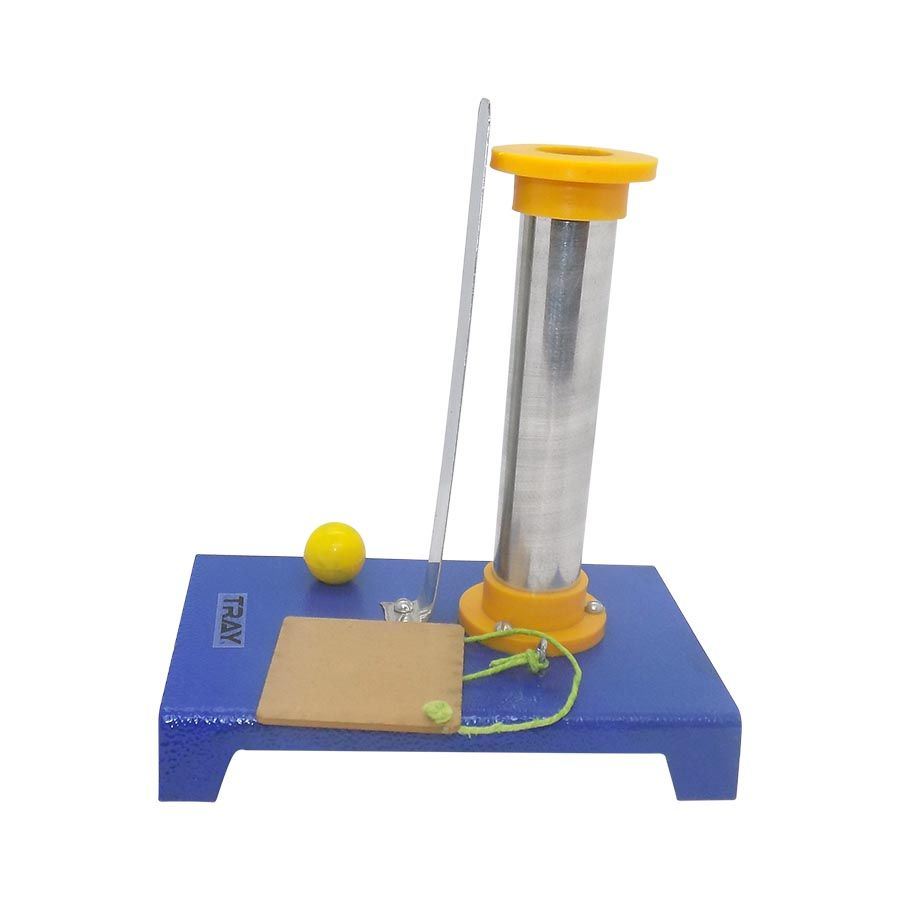 Aparat, üst kısmında kare bir levha ve üzerine yerleştirilen bir top ile çalışır. Yayı gerip serbest bıraktığınızda kare levha hızla fırlar, top ise hareketsiz kalarak dikey borunun içine düşer. Bu etki, net dış kuvvet olmadığında cismin harekete karşı gösterdiği direnci yani eylemsizliği açıkça gösterir.