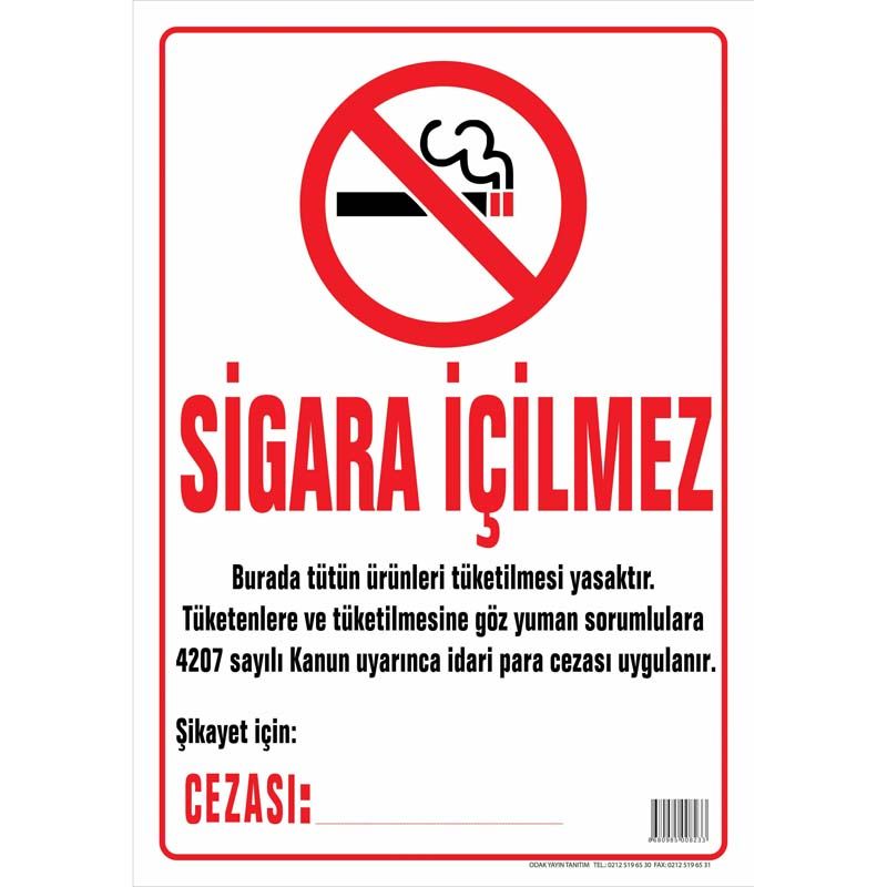 Sigara İçilmez Panosu 50×70 cm, kapalı ve ortak alanlarda sigara içilmemesi gerektiğini açık ve net şekilde belirtmek amacıyla hazırlanmış, resmi kullanıma uygun bir uyarı panosudur.
